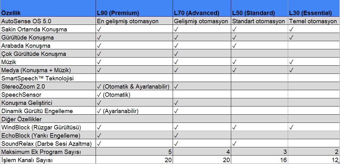 PHONAK İŞİTME CİHAZI MODEL KARŞILAŞTIRMA TABLOSU